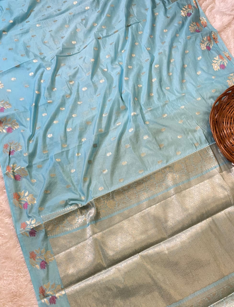 BEAUTIFUL BANARAS SOFT MEENAKARI JAAL WOVEN CHINIYA KATAN SILK PREMIUM QUALITY SAREES