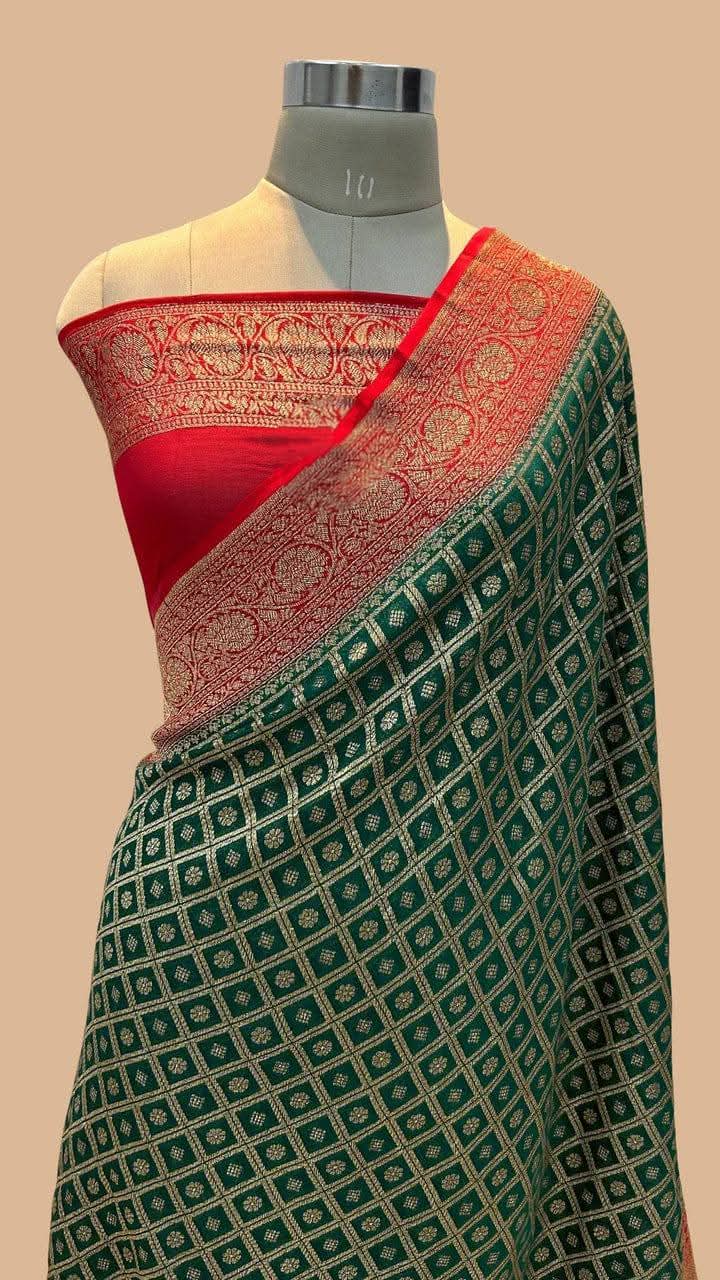 • BANARASI HANDLOOM PURE KHADI GEORGETTE SAREE