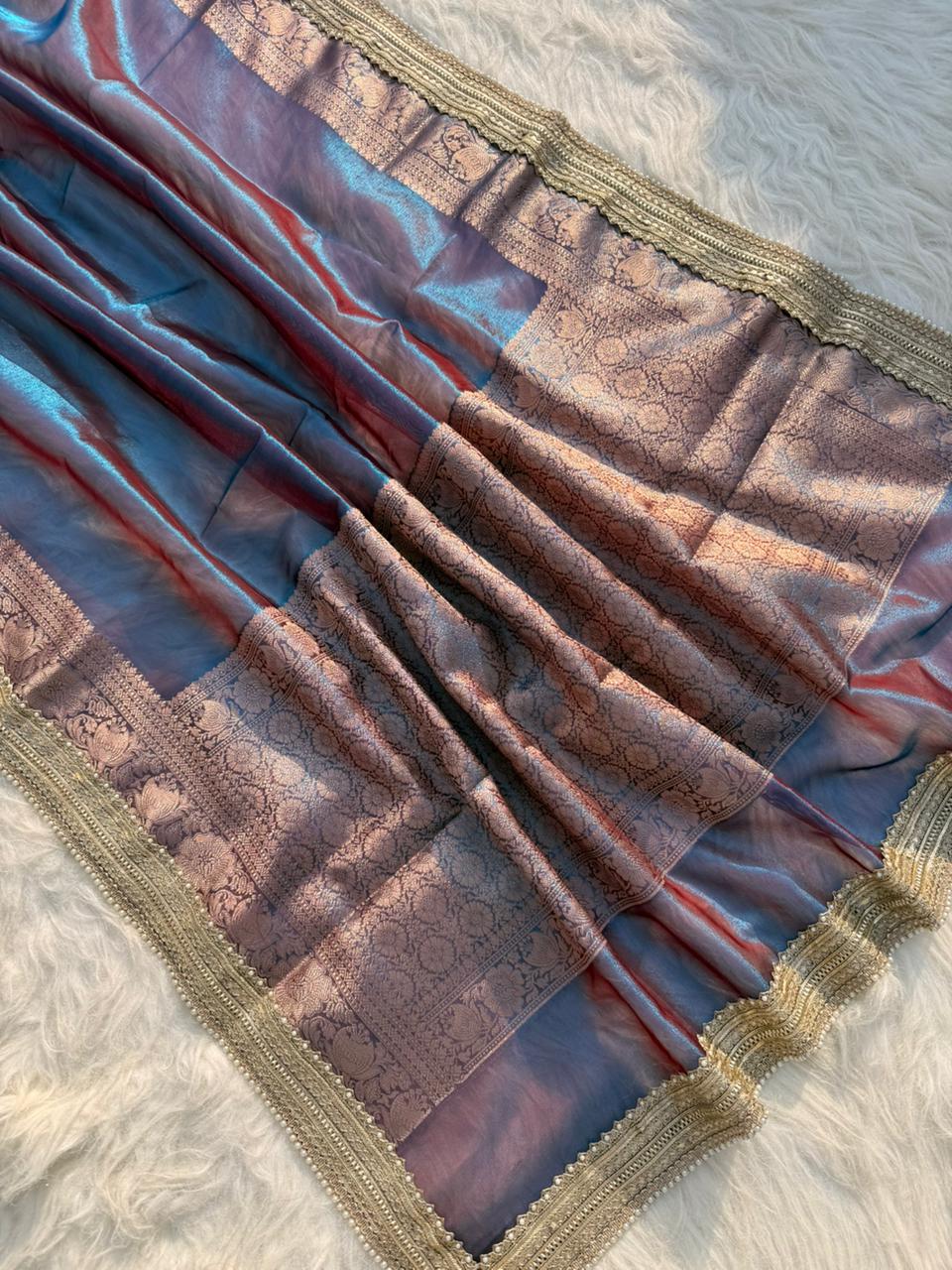 BEAUTIFUL BANARASI GLASS TISSUE SILK SOFT WOVEN LACE WORK SAREE
