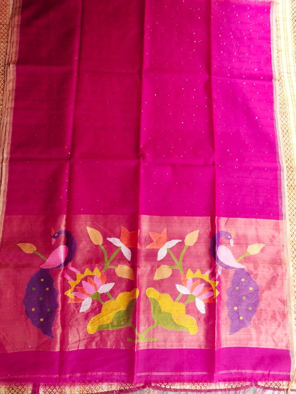 • HANDLOOM SILK BY RESHAM WORK PAITHANI JAMDANI ZARI PALLU SAREE
