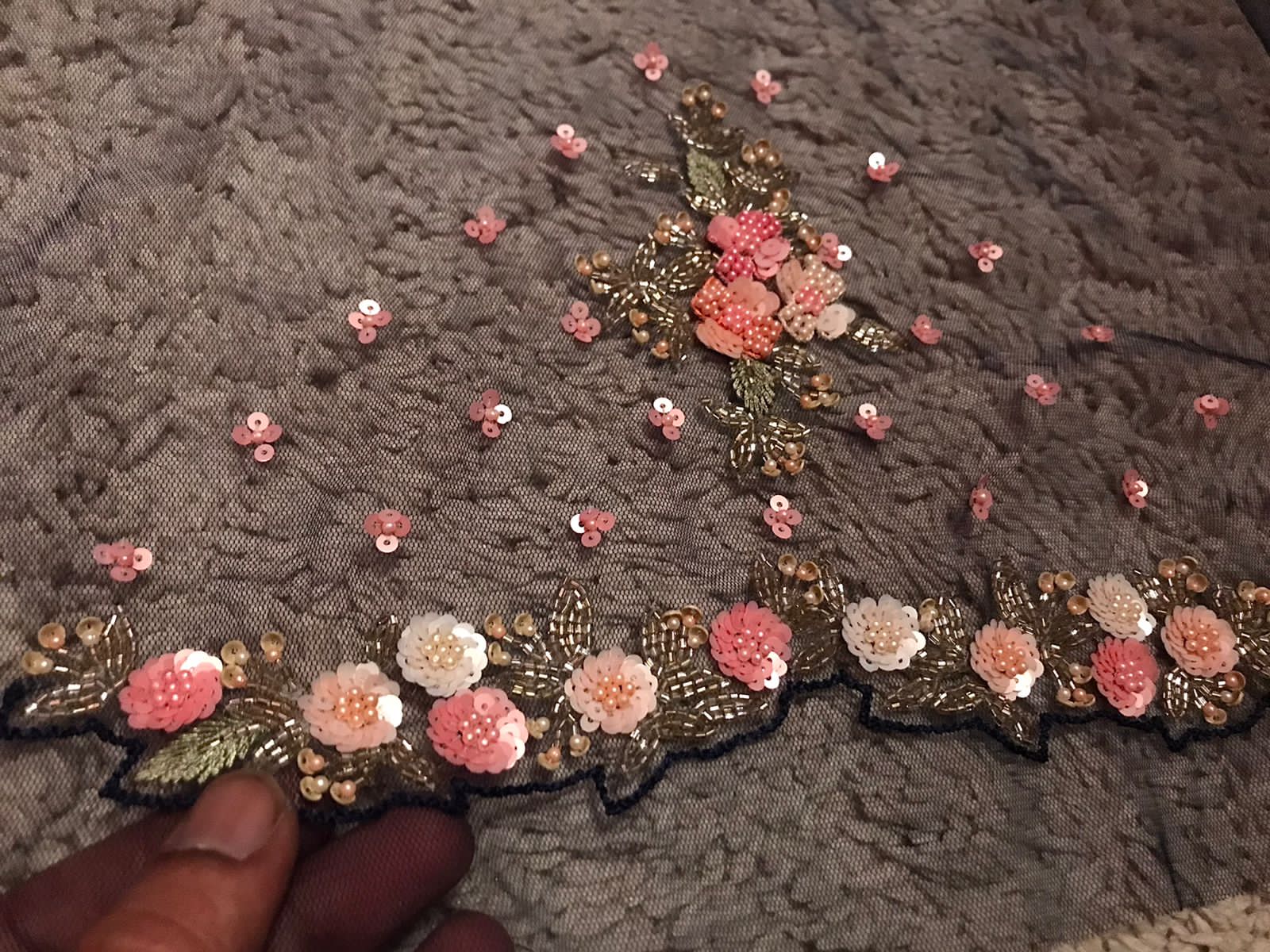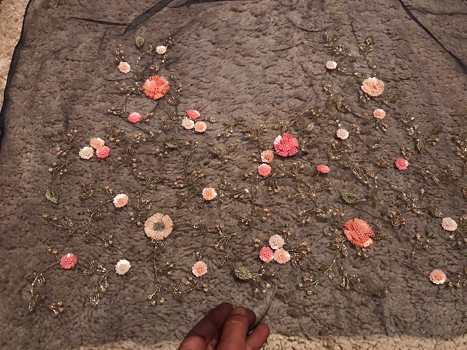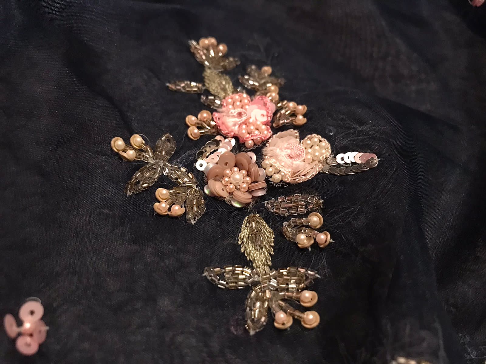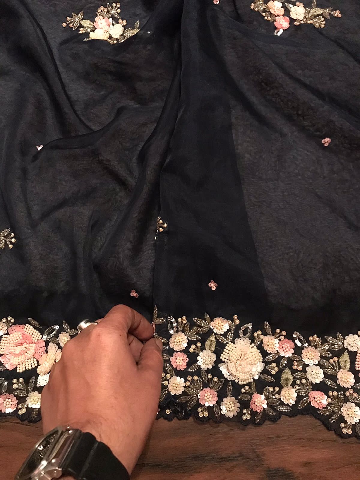 Navy Blue Premium Pure Organza Silk Saree with Resham & Pearl Sequins Handwork