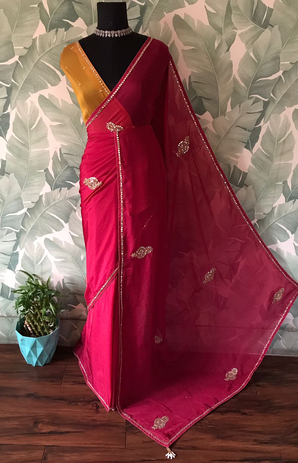 Premium Pure Russian Silk Saree with Original Mirror Handwork