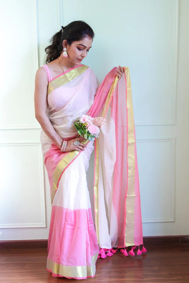 • Pure Mul Cotton Saree – Self Body Care Inspired Premium Collection