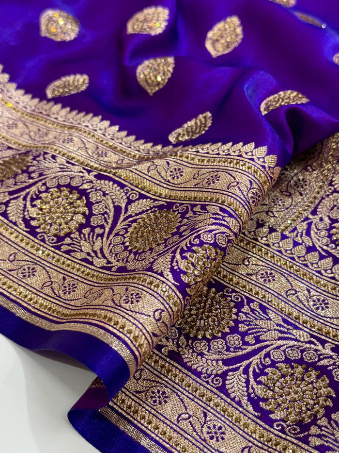 Purple Satin Katan Silk Saree Buta With Swarovski Work