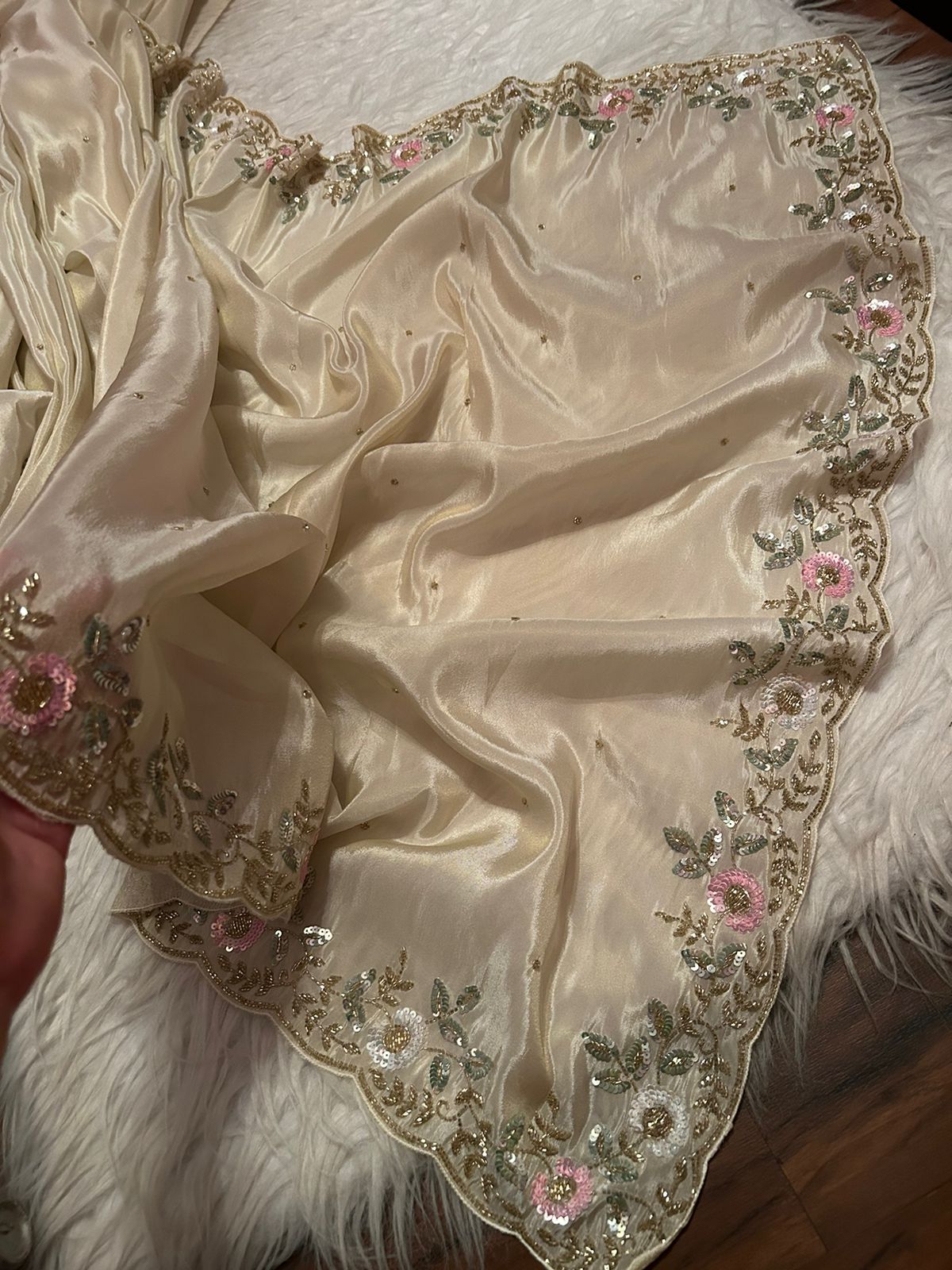 Rich Gold Premium Pure Shimmer Organza Tissue Silk Saree with Pearl Sequins Handwork